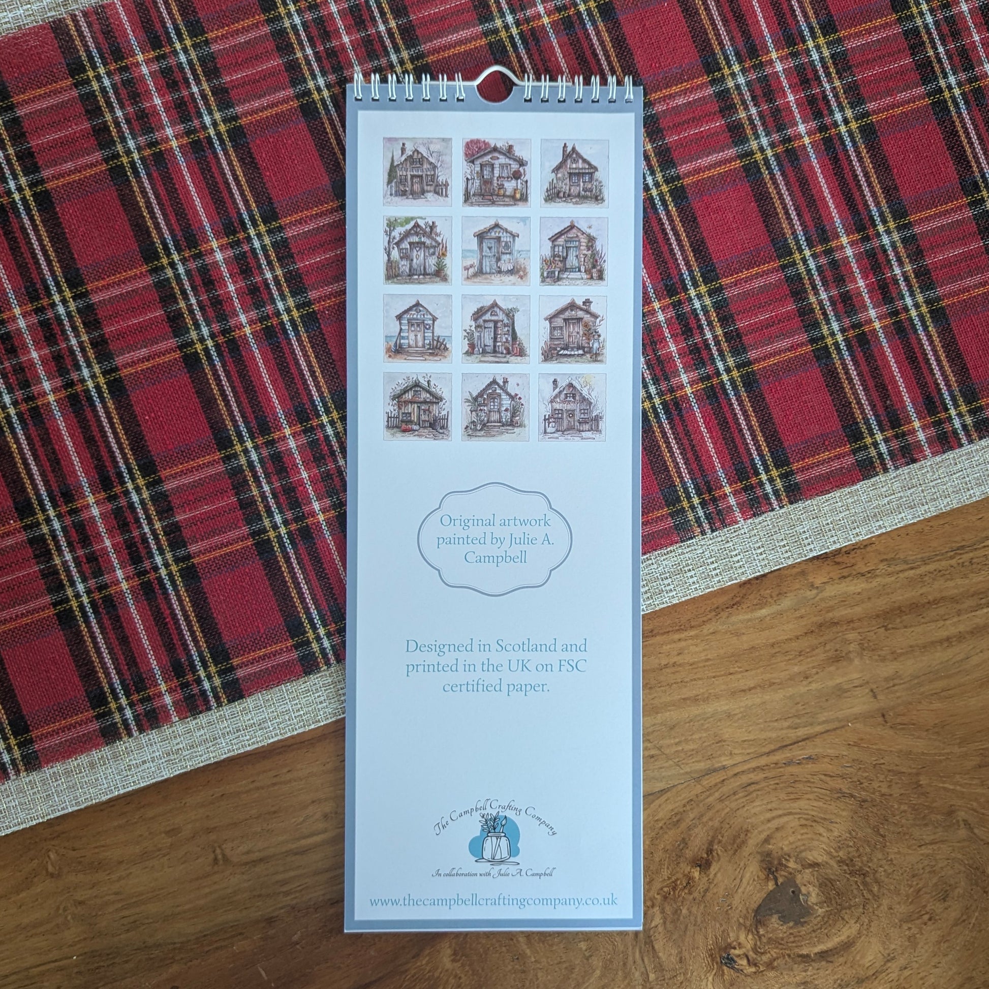The art printed on the calendar is original artwork by artist Julie A. Campbell. Designed in Fife, Scotland. Printed in the UK on FSC certified paper.